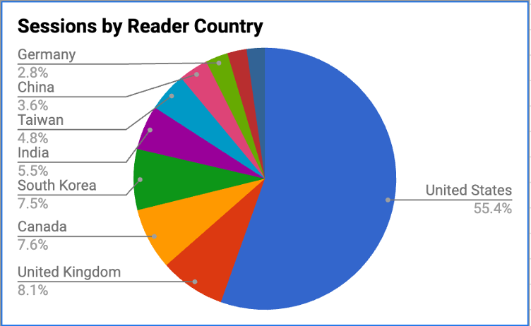 Our readers have consistently come to Platypus from different sources. Among our blog referral list were seventy-three unique university learning management systems (e.g., Blackboard, Canvas, and Moodle) suggesting that our blog is being assigned and/or recommended to students for learning at approximately seventy-three universities.